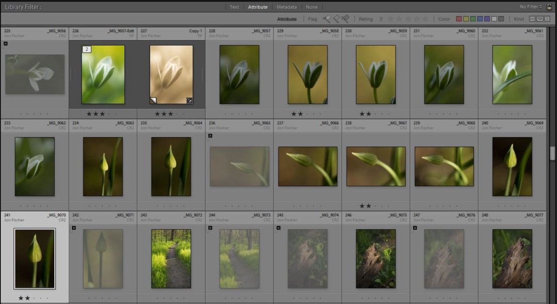 With all of the photos now into a temp folder organized by date and if needed shoot, I quickly scan through the photos, what I call the first pass. Any photo that is technically flawed: out of focus, blurry, poor composition, wrong exposure beyond saving, etc – I hit the ‘X’ key and move on to the next photo. These are the rejects. I do not worry about deleting each photo as I can quickly delete them all in one click at the end. Any photo that stands out from the crowd gets a star rating, I use 2-stars as my default ‘good’ photo, I typically use 1-star to denote a set of photos for panoramic sets, long exposure stacking, etc. Really good photos that I want to make sure get noticed above the ‘good’ shots get 3 or maybe 4 stars so I know to go back to those first. This is also useful when I take 5 or 6 of the same composition and 3 are good and one is spot on perfect, I will not have to go back to each of the starred photos looking for the best of the best to work on.